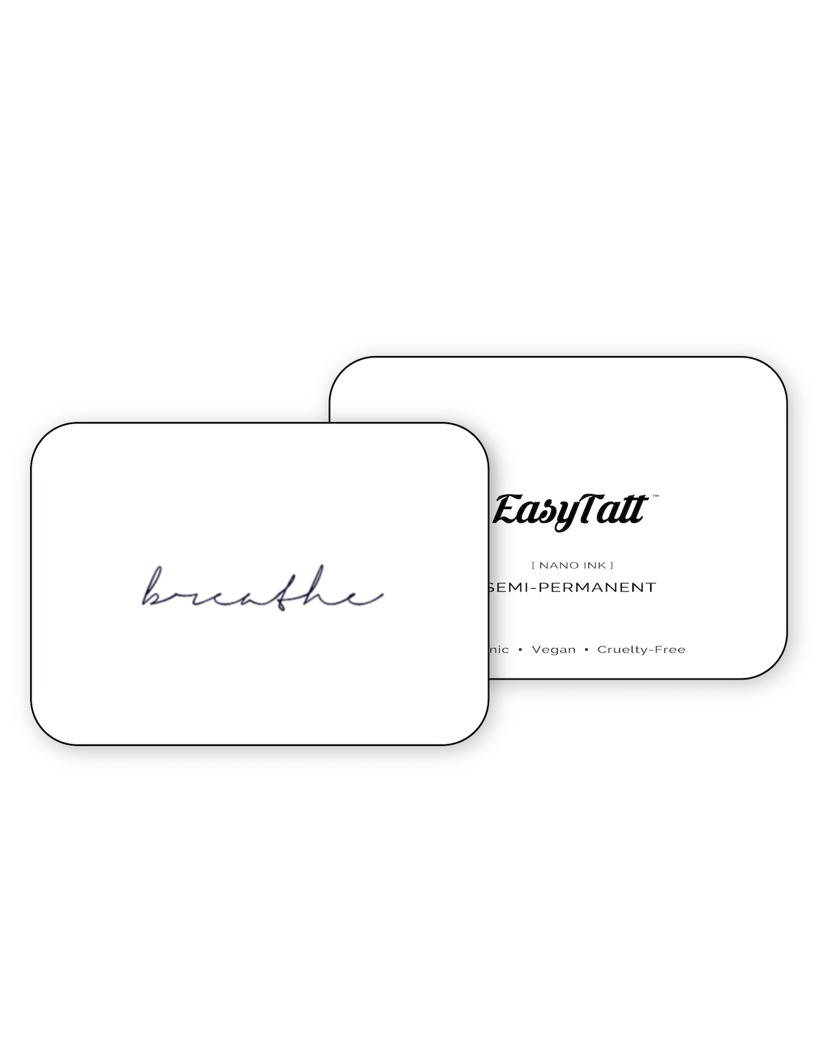 Introducing the Breathe two pack semi-permanent tattoo! Experience the unique cursive script in a simple and elegant design that captures your deepest sentiments. Let your words breathe and stay on your skin for years to come! Make a beautiful statement that speaks volumes.