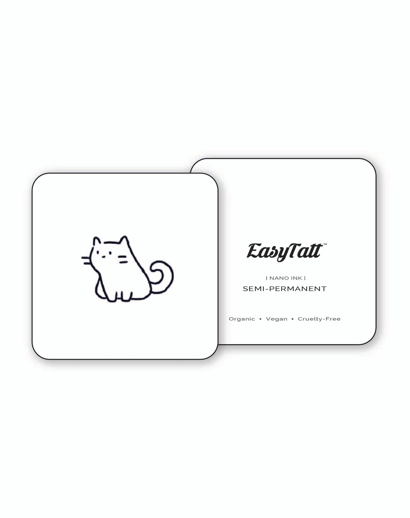 Introducing Curious Kitty: A sweet and sleek black semi-permanent tattoo that'll have you purring with pride! Whether it's a subtle accent or a bold statement, this pawsitively perfect tattoo is the purr-fect way to express yourself without lifting a paw!