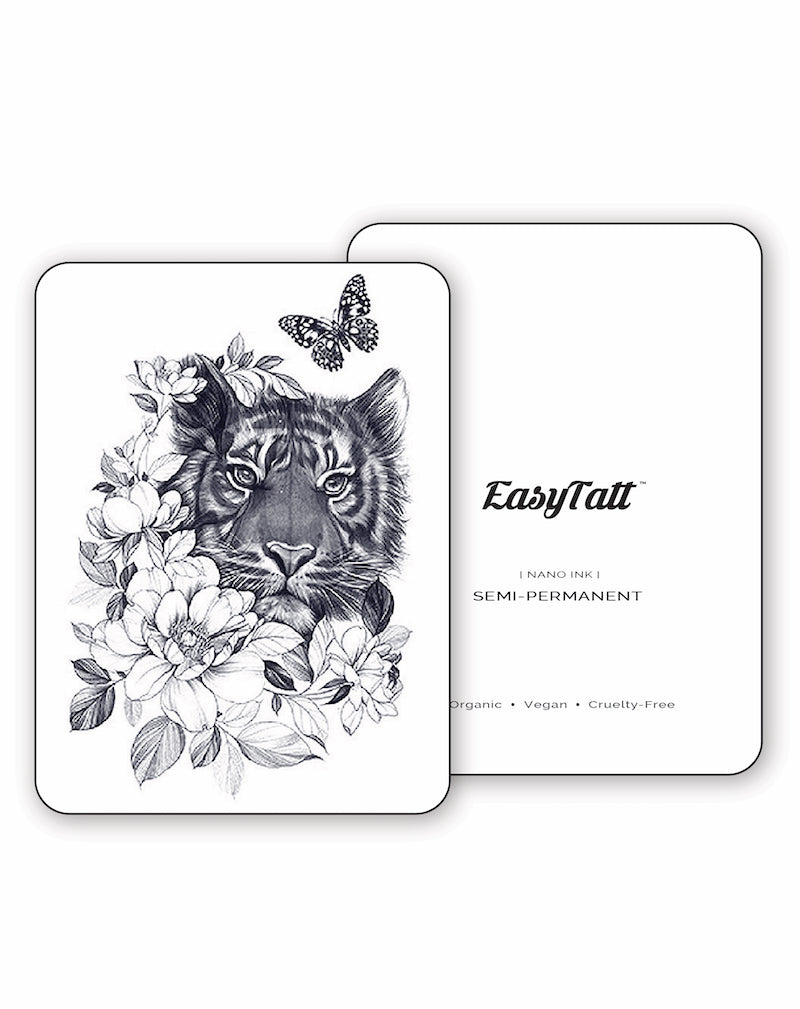 Introducing the Beautiful Tiger Semi-Permanent Tattoo! Get a stunningly realistic design with no pain or commitment: all the fun of a tattoo without the long-term effects! Combining floral beauty with an enchanting Tiger face. With its fade-resistant formula it is sure to make heads turn! Get ready to show off your tiger style!