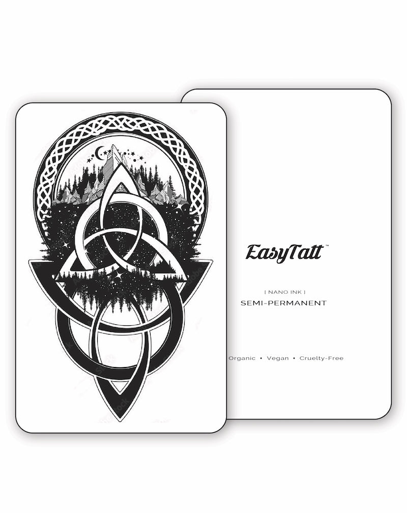 Bring a touch of the old world to any look with the Celtic Dream black semi-permanent tattoo! Its clean symbolic design will last up to two weeks, bringing a unique, eye-catching style to your body. Enjoy the look of a traditional tattoo, without the commitment!
