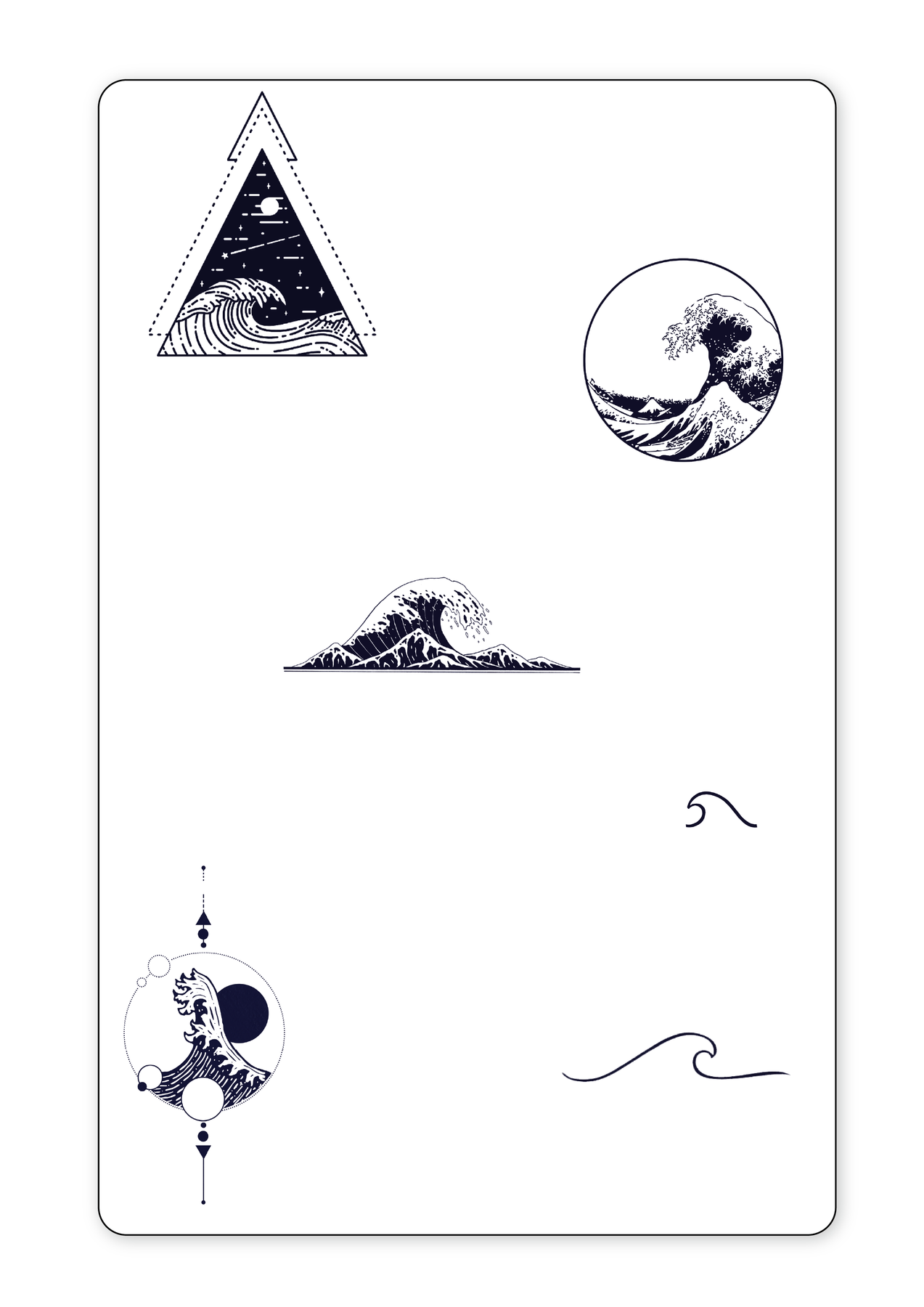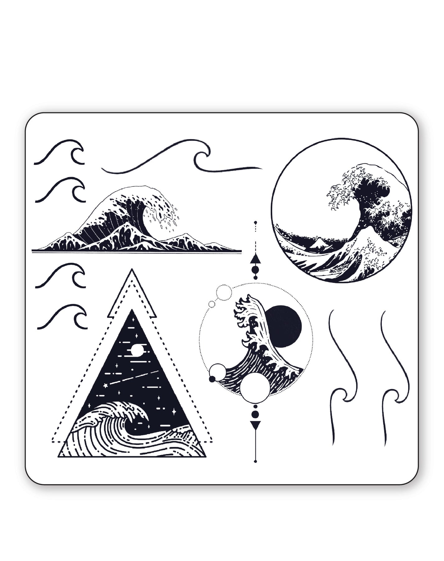 The wave tattoos in this set range from (2cm x 1cm) to (9cm x 3.5cm)